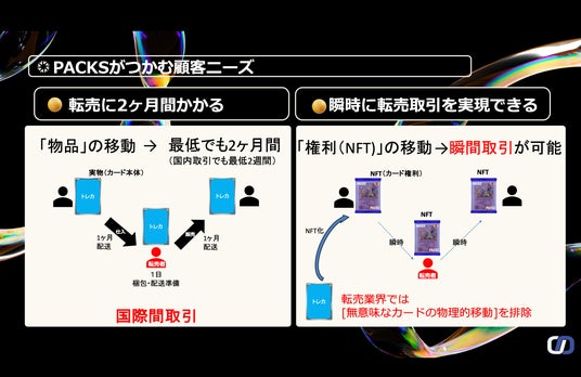 「PACKS」は、物理的なトレーディングカードの国際取引に伴う煩雑さを解消し、ユーザーが瞬時にどこからでもトレーディングカードの取引に参加できるプラットフォームです。この利便性と市場性の高さが、今回のセールの成功の主要因となりました。