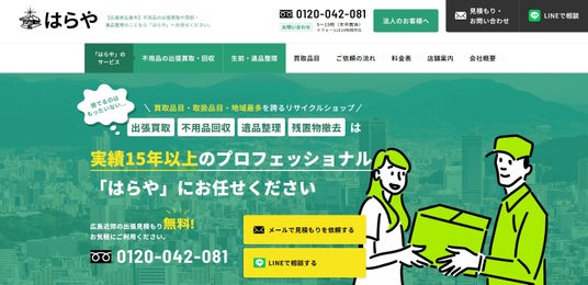 出張買取のはらやは、不用品の買取と回収のどちらも対応する専門店です。家具・家電、骨董品、ブランド品、貴金属、アパレル、パソコン、おもちゃなど、幅広い品目を買取しています。独自の海外輸出ルートで高価買取を実現し、引越しや買い替え、遺品整理、残置物撤去にも対応。他社で断られた物も気軽に相談を受け付けてくれます。