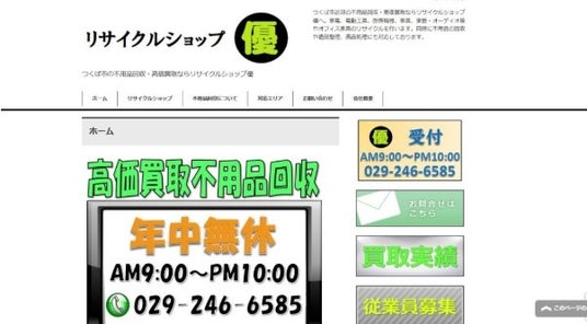 リサイクルショップ優つくばは、茨城県つくば市を拠点に、家電製品や電動工具、事務機器、厨房用品、家具、楽器、オーディオ機器など、