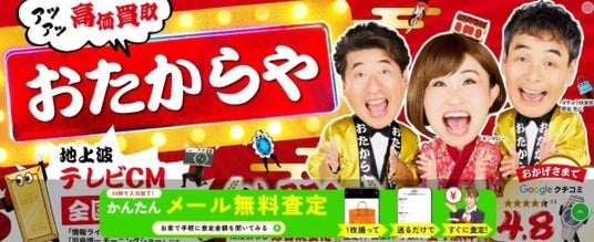 おたからやは全国約1,350店舗を展開する大手買取専門店です。ブランド品や貴金属などの高級アイテムを中心に取り扱っており、Google口コミは★4.8。事前に買取価格が分かる簡単・手軽なライン査定も人気です。