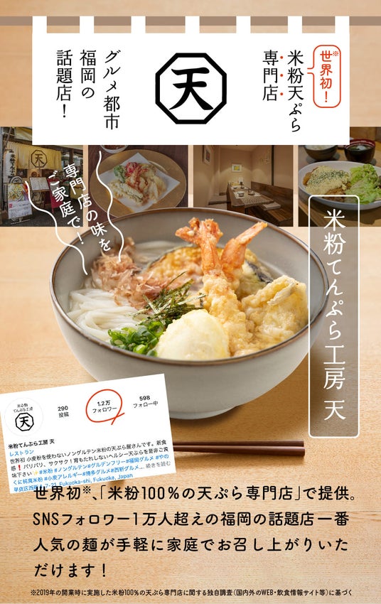 当社運営の「米粉てんぷら工房 天」(Instagram @komekotenpurakobou・フォロワー1.2万人)では、米粉の天ぷらと米粉うどんや米粉ラーメンを中心に提供しております。