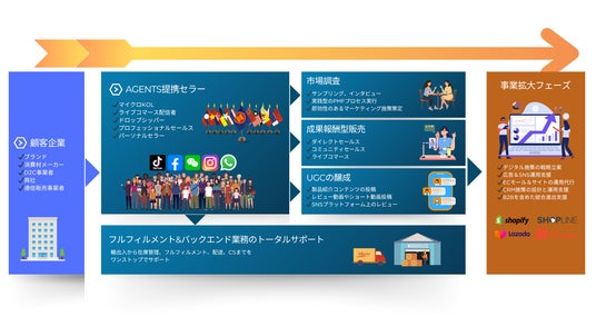 ASEANを中心にライブ配信者・KOL・アフィリエイター・マイクロセラー・ドロップシッパーなど100名以上のセラーと提携。商品特性やターゲット層に応じた販路の設計が可能です。