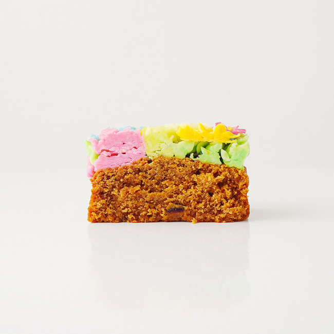 まるで生花のようなお花は特別なレシピのバタークリームで濃厚なのにあっさりとクリーミー。スポンジは素材に拘った「北海道産の小麦」「道南産の人参」を使用。バタークリームと相性が良いキャロットケーキに甘酸っぱいクランベリーとシナモンが入ってます。視覚と味覚が一度に満たされる食べられるお花のケーキです。
