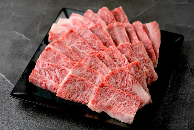 ・カルビコクと旨味の強いタテバラとインサイド、こってりした旨味のあるバラヤマにサシの見事なナナメを合わせたカルビです。上カルビにも選ばれる部位を、最高級和牛でお届けします。