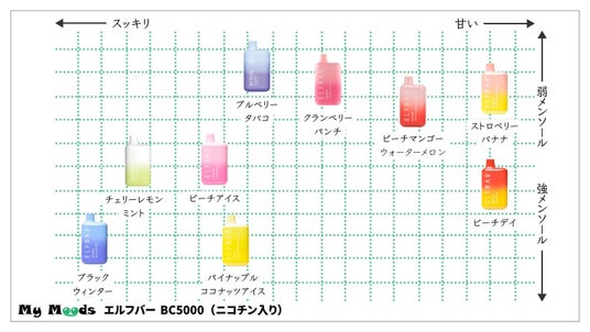 エルフバー BC5000についても、豊富なフレーバーの取り揃えがあり、お好みで選択できます。