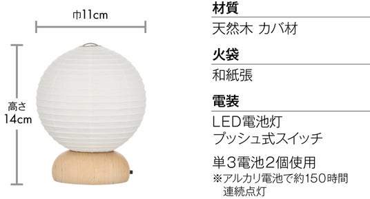 詳細を見る<商品概要>ミニ盆提灯 ましろ 丸 コードレス 3709