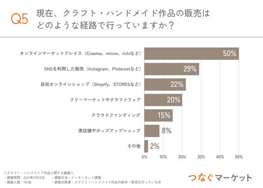 「オンラインマーケットプレイス(Creema、minne、iichiなど)(50.0%)」が最も多い結果となりました。