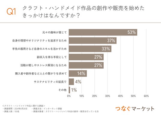 「自身の理想やオリジナリティを追求するため(37.0%)」「手先の器用さなど自身のスキルを活かすため(33.0%)」といった回答も次に多く集まりました。