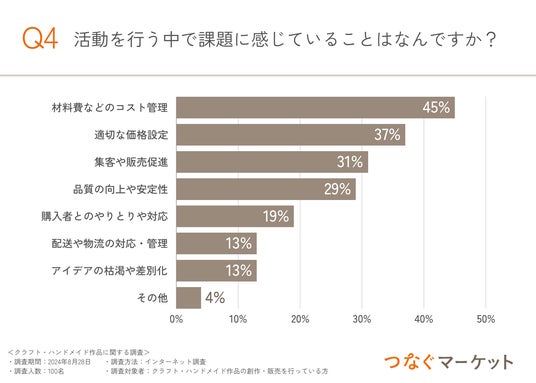 ハンドメイド作品の創作や販売活動を行う上での良いエピソードが明らかになりましたが、課題に感じていることもあるのではないでしょうか?