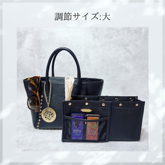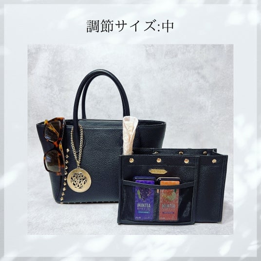 ●商品開発の背景ミニバッグからA4トートバッグにまで対応可能な進化したバッグインバッグ主役級のバッグは多くの企業が新作として発売される中、便利グッズとして定着したバッグインバッグの現状は、平均化されたサイズの流通に留まっております。多様化する時代にこそ一人ひとりの生活スタイルに寄り添うことができる進化したバッグインバッグの必要性を感じ、ミニバッグからA4トートバッグに対応できる横幅可変式バッグインバッグを開発いたしました。バッグの中をキレイに整えオシャレにすることでモノを探す時間から解放され、歓びに満たされる時間が増えます。収納のお悩み解決をより充実させ、便利グッズだけでは終わらないデザイン性を取り入れることでお気に入りバッグの魅力を高める新しいバッグインバッグ。片付け上手を叶えながらバッグの中の劇的な変化をお楽しみいただけます。