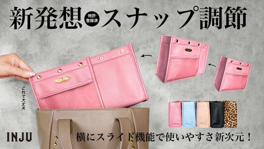 INJUありそうでなかった「横幅サイズが変わる」新機能は、バッグサイズに合わせて横幅サイズの使い分けを可能とする特許機能。バッグの中に革命をもたらすバッグインバッグとして販売開始いたしました。