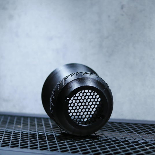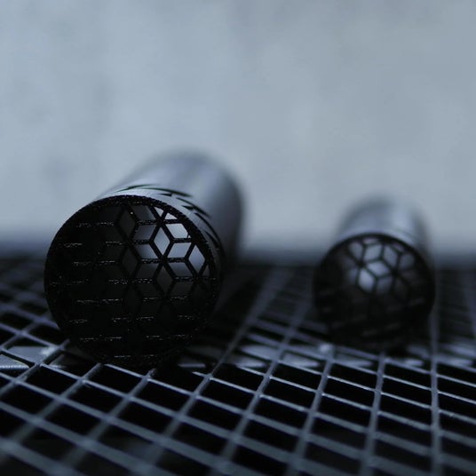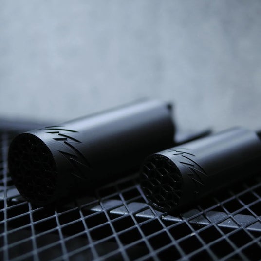 ・環境配慮素材PLA+(生分解性硬質プラスチック)を採用し、無骨さを感じさせるマットブラックの質感と、ブランドの象徴であるサンダー柄を刻み込んだ意匠。