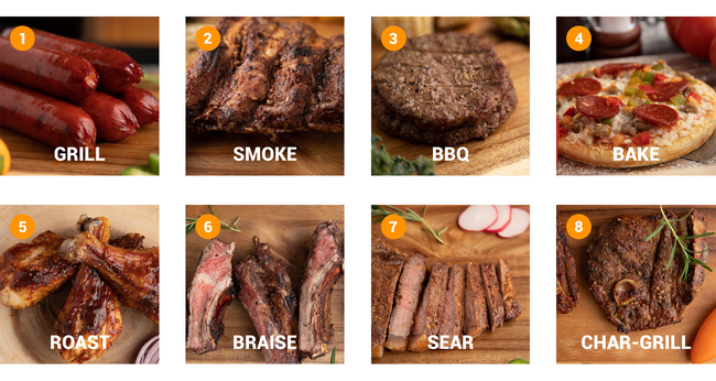 ◇燻製、BBQ、ピザなど8種類の調理が可能!