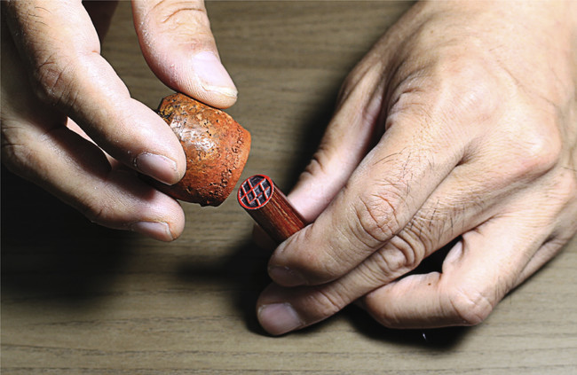 進めます。印面の彫りは、機械彫りの後に熟練した職人が一つひとつ手による仕上げ作業を行っております。