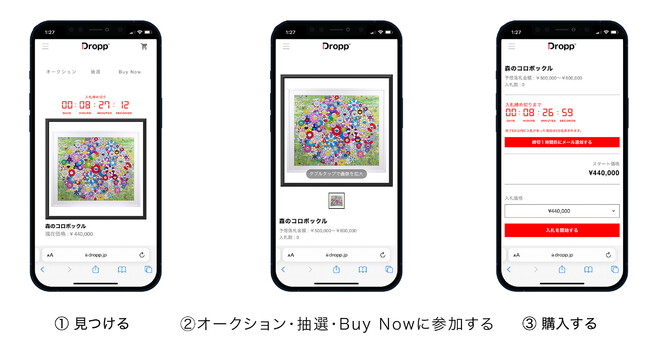 また販売者へはDroppは従来型のオークションハウスは敷居が高く法人利用が困難である一方、ネットオークション等では出品が埋もれてしまうなどの問題を解決したく、サービスを提供してまいります。