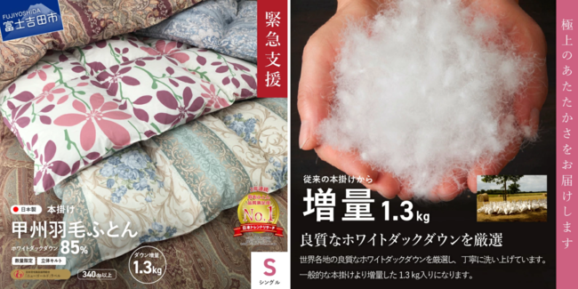 ▼寄付金額50,000円【数量限定!緊急支援品 訳あり】甲州羽毛ふとん 本掛けふとん増量1.3kg (シングル/お任せ柄)