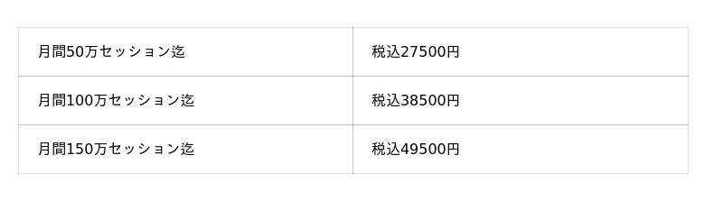 50万セッションを超えるごとに追加で1万円が追加されます。