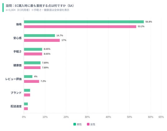 ECで商品を選ぶ際に最も重視される要素は「価格」で、55%が最優先と回答しました。