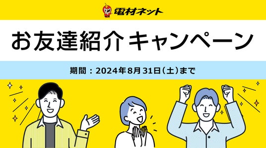 紹介する方と紹介される方のどちらにも2,000円OFFクーポンをプレゼント!電設資材通販サイトの電材ネットでお得に買える“お友達紹介キャンペーン”開催中!