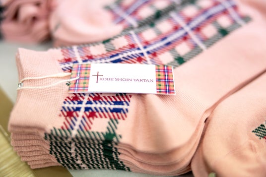 神戸松蔭タータン靴下は、大丸神戸店で9月18日(水)~23日(月)まで開催中の人気イベント「神戸市(こうべいち)」に特別出展する神戸松蔭女子学院大学POP-UP SHOP「知っとう?神戸松蔭~六甲から来ました~」で展示、先行販売しています。また、松蔭女子学院のオンラインショップ「神戸松蔭タータンショップ」や学内のコンビニエンスストアにて、10月初旬より数量限定で販売いたします。