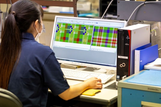 いわき靴下 ラボ アンド ファクトリーだからこそ編むことができる柄通常、縦糸と横糸で織り上げる生地に比べて、筒状に編み上げる靴下は、構成上タータン柄を表現することは至難の業です。それぞれの柄糸が色鮮やかに出るように編み目を調整しながら、試作を何度も繰り返して、ようやく商品化することができました。国内随一の繊細な技術を受け継ぎ、研鑚を積んだ職人だからこそ、完成させることができたとも言えます。