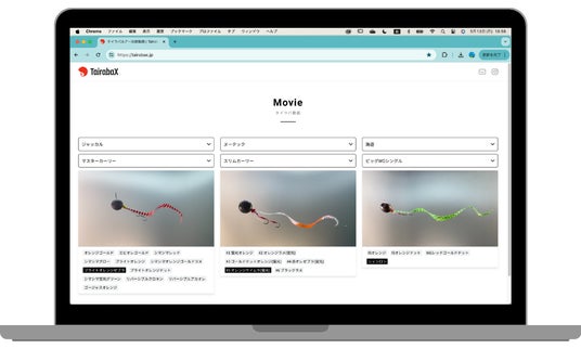 商品セレクトの仕組みをできる限りシンプルな構造にし、より便利で使いやすいものとなっています。またタイラバの動きを比較できるコンテンツページがあり、これは他のECショップやリアル店舗にない付加価値ポイントとなっています(下記画像参照)。