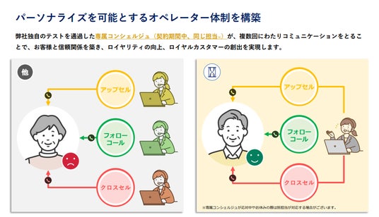 ※一般的なコールセンターのオペレータとは異なり、コールセンターでの経験年数や応対品質・ホスピタリティコミュニケーションスキルの評価と、専門のトレーニングを実施。