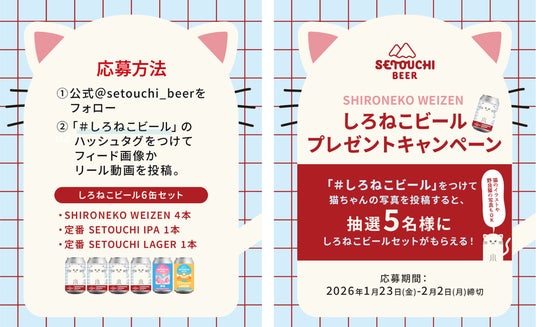 株式会社瀬戸内(本社:香川県高松市、代表:田嶋真吾)は、2月22日の「猫の日」に先駆け、白猫をモチーフにしたクラフトビール「SETOUCHI SHIRONEKO WEIZEN(セトウチ シロネコ ヴァイツェン)」を2026年1月22日(木)に発売します。
