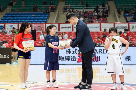 今回参加してくださった子どもたちは、Bリーガーと同じようにチアリーダーのパフォーマンスやスタジアムの演出を受けながら入場し、Bリーガーと同じ場所で試合を行いました。