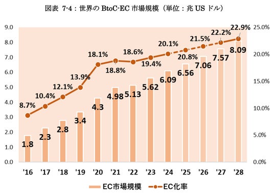 世界の BtoC-EC 市場規模(単位:兆 US ドル)経済産業省 『令和6年度電子商取引に関する市場調査報告書』