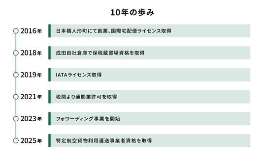 ECMSジャパンは2016年、日本橋人形町の事務所より越境EC物流事業をスタートしました。以来10年間にわたり、仕向地の拡大、ネットワーク強化、サービス機能の拡充を積み重ねてまいりました。