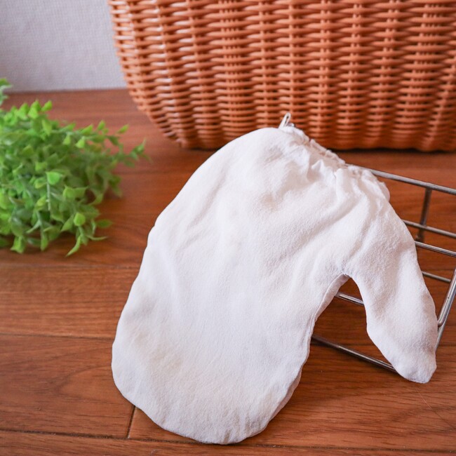 シルクミトンは石鹸を使用しなくても肌を傷つけず角質や皮脂汚れなどを簡単に除去できる新感覚垢すりミトンです。もちろん石鹸をつけて洗うことも可能です。従来のシルクだと泡立ちが良くないという声もありますが、このシルクミトンは2層構造になっているため空気を含みやすく泡立ちも良いです。詳しくはコチラ▶︎URL:https://www.makuake.com/project/jouet-mittens/定価:4560円(2枚1セット)