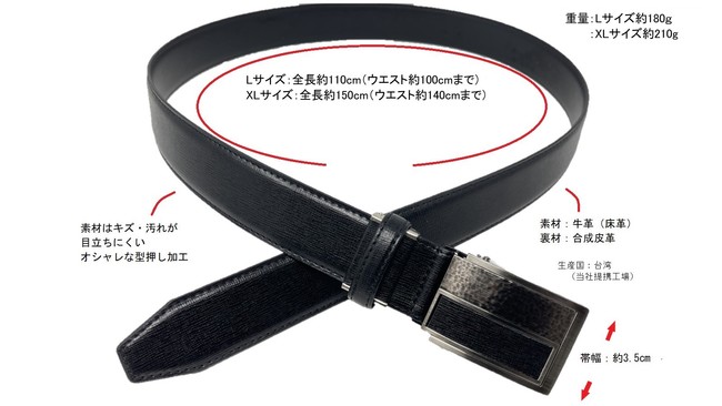 XLサイズ:全長約150cm(ウエスト約140cmまで)サイズカット可能