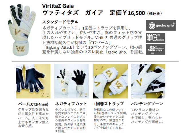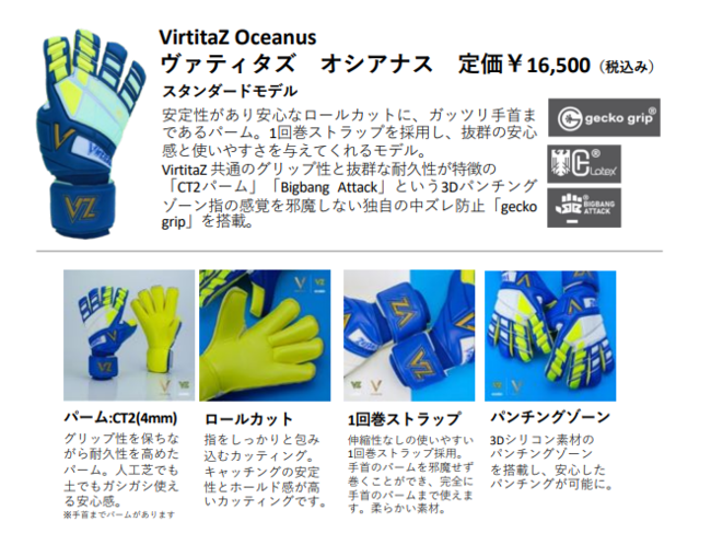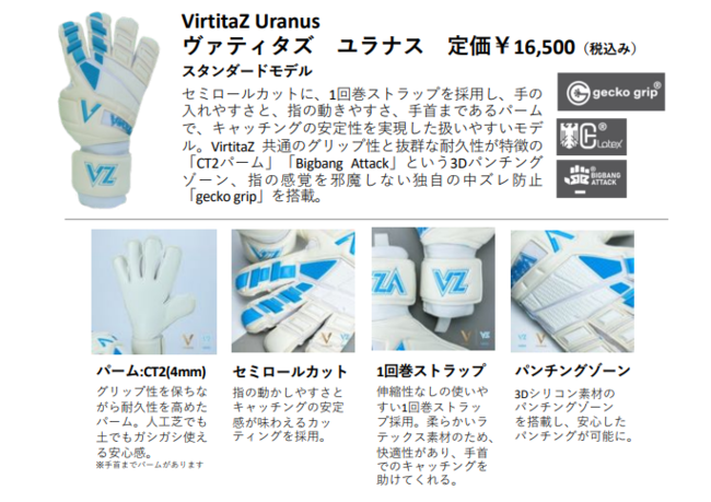 VirtitaZ共通のグリップ性と抜群な耐久性が特徴のCT2パームを採用。手首までパームがあります。