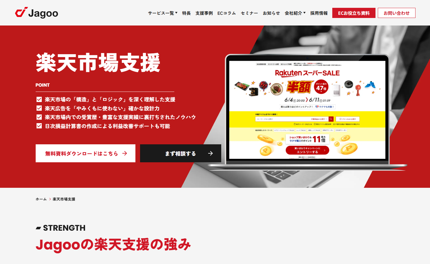 ジャグー株式会社は、ECビジネスの成長を支援する専門コンサルティング企業として、楽天市場、Amazon、Yahoo!ショッピング、自社ECサイトなど、あらゆるプラットフォームでの売上拡大を実現するサービスを提供しています。豊富な実績と各モールの特性を熟知した専門性により、クライアント企業の課題に応じた最適なソリューションを提案し、持続的な成長を支援しています。