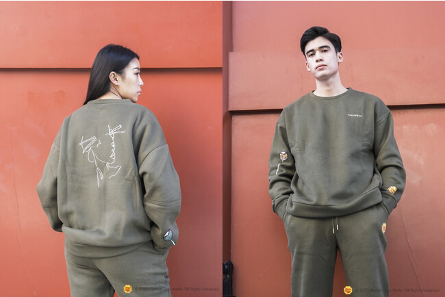 AMATERASの定番アイテムであるトラックスーツにChupa Chupsのロゴマーク、パッケージデザインを加え、どこか懐かしさを感じるデザイン。