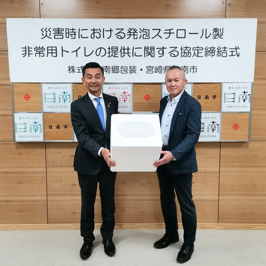 株式会社南郷包装(本社:宮崎県日南市、代表取締役:川野 純一)は、自社工場製造の発泡スチロール製「非常用トイレ」を発売いたしました。「非常用トイレ」は簡単に使用できることを最優先に開発し、直観的で分かりやすいデザインでポリ袋の設置はわずか10秒で完了できます。発泡スチロールの長所である「軽量」「耐久性」「水に強い」ことを生かした国内製造品ですので、安心してお使いいただけます。