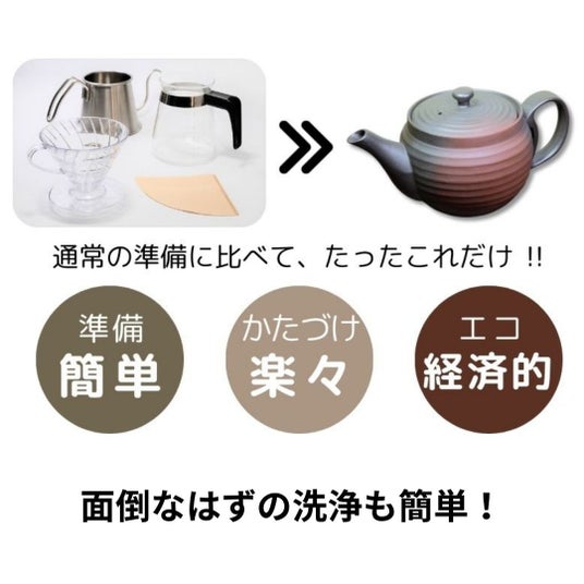「この一杯が、コーヒーの常識を変える。」コーヒー愛好家やカフェ好きの間で話題となっている「コーヒー急須」。過去にMakuakeで1000万円を超える成功事例が生まれ、いま新たな進化形が登場!!◆コーヒーの概念が変わる。常滑焼×特注200メッシュ畳織フィルターが生んだ新体験。日本の伝統技術「常滑焼」と、超微細な「特注200メッシュ畳織ステンレスフィルター」を融合した、全く新しいコーヒー急須が誕生しました。