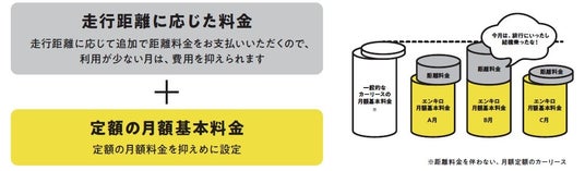 https://yenkilo.jp ) 」は、お車をリースでご契約いただき、月額固定基本料金と、走行距離1kmあたりの距離料金でお支払いいただくマイカーサービスです。