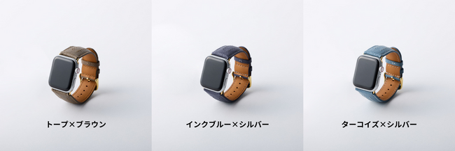 カラー(バンド×ステッチ):「トープ×ブラウン」、「インクブルー×シルバー」、「ターコイズ×シルバー」