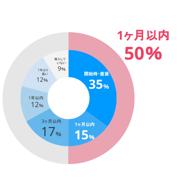 EC事業開始から1ヶ月以内に導入した事業者:50%