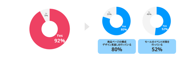 商品ページの構成・デザインの見直しを行っている事業者: 約80%