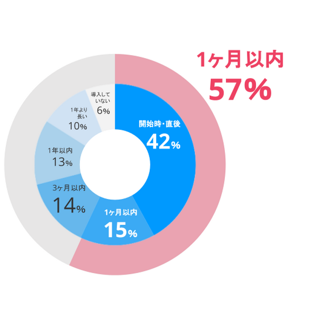 EC事業開始から1ヶ月以内に導入した事業者:57%