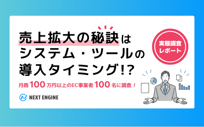 ネクストエンジンを運営するNE(エヌイー)株式会社(本社:神奈川県小田原市、代表取締役社長:比護 則良、Hamee株式会社100%子会社、以下「NE」)は、月商100万円以上の売上を達成かつ、EC運営のためのシステムを導入したことがあるEC事業者100名に対するアンケート調査を実施し、その結果を発表しました。