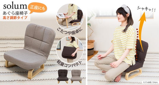 ソルムは座るだけで正座やあぐら座りの負担を軽減し、背筋が伸びた美しい姿勢へ。しっかり座ると心までシャキッとしますよね。腰痛にお悩みの方にもお勧めです。