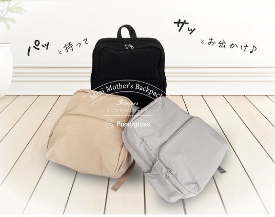 プレステージアス株式会社充実の多機能ポケットで子育てもオシャレも楽しむミニマザーズリュックが2025年1月1日より楽天市場にて予約販売を開始