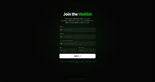 デモ体験後、そのままβ版Waitlistへの登録も可能です。