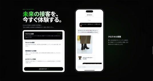 「以前この色味を気にしていましたよね」「前回ご購入いただいたアイテムと相性がいいです」といった、人間の販売員のような文脈ある接客をオンライン上で再現することで、ECで失われがちだった“自分のための接客体験”を取り戻します。