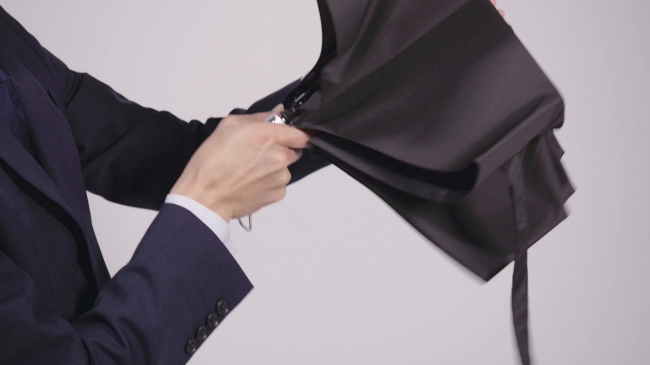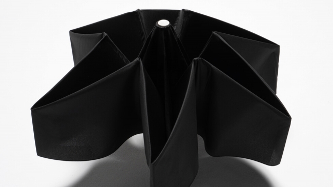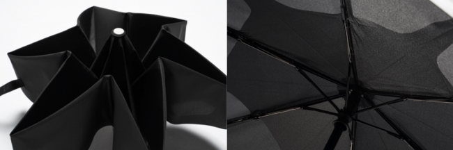 世界初の「形態安定技術」を使った折りたたみ傘「urawaza(ウラワザ)」は、傘の裏側に貼られたPET樹脂素材の特殊シートが、たたむ際のガイドの役割を果たすことで、シワにならずに折りたたみやすくなり、3秒でたためることを可能としています。