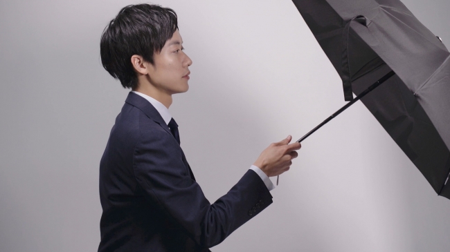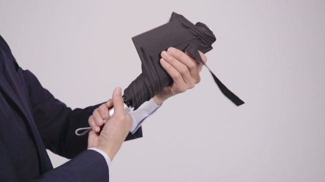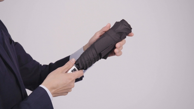 「形態安定」では、「形状記憶」とは異なり、使用するたびに薄れることなく、半永久的に「折り目」が残ります。そのため、雨の多い時期に感じる、折りたたみ傘特有の「たたむ」という「煩わしさ」から解放されます。この形態安定技術の折り畳み傘への活用が、世界初となります。